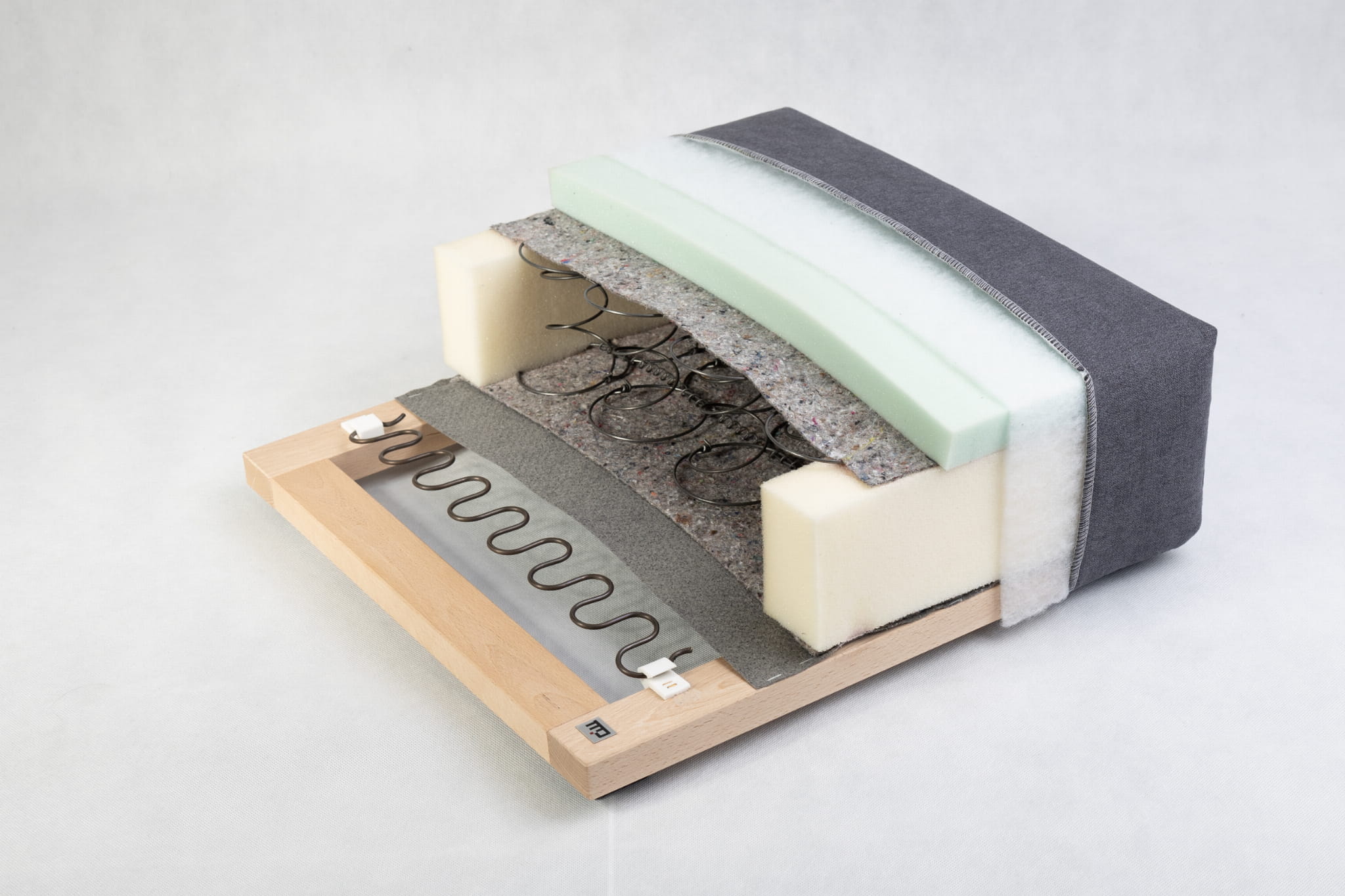 - Siedzisko: sprężyny Bonell + sprężyny faliste + pianka elastyczna.