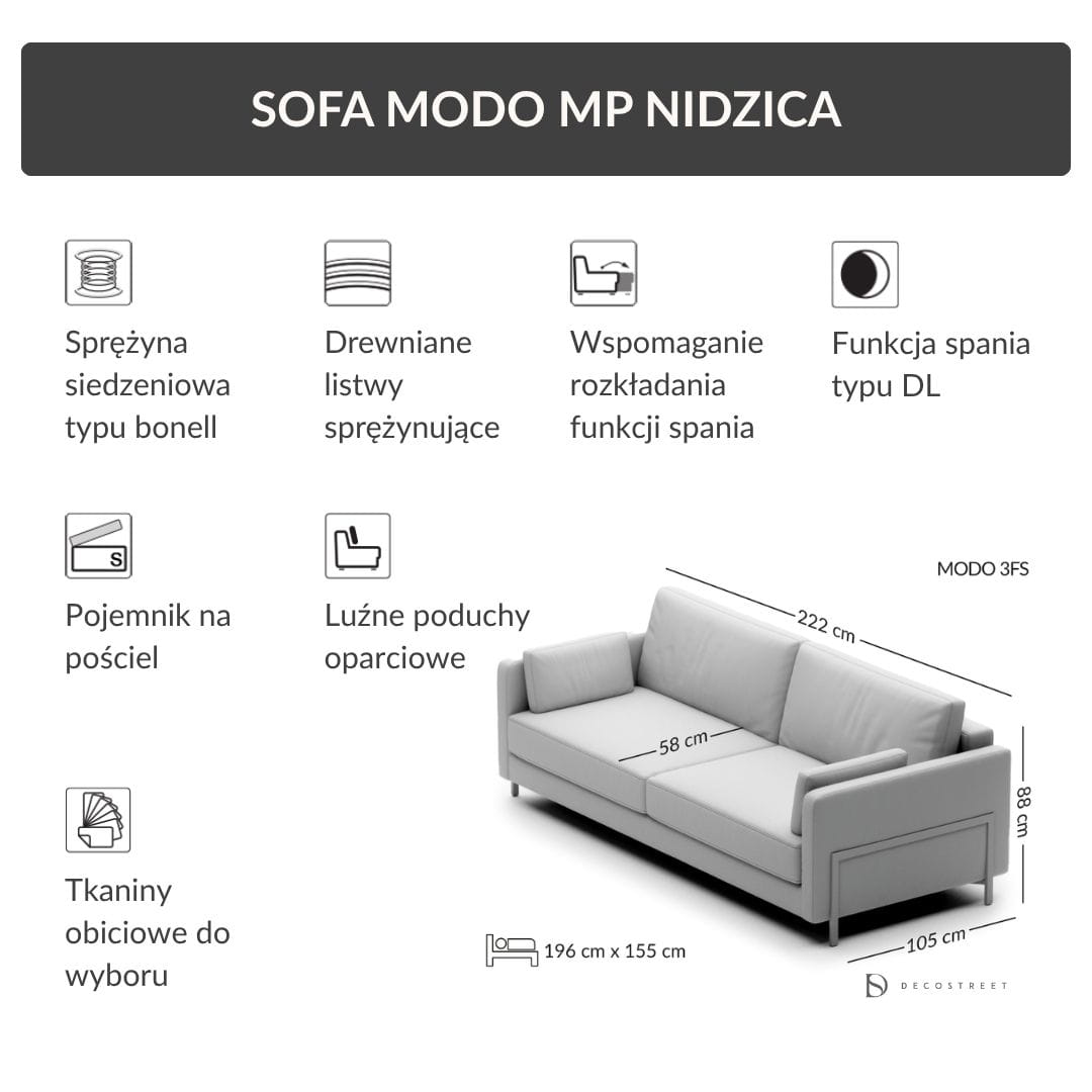 Informacje o sofie Modo 222 cm MP Nidzica Maya 06 (fargotex) z ekspozycji