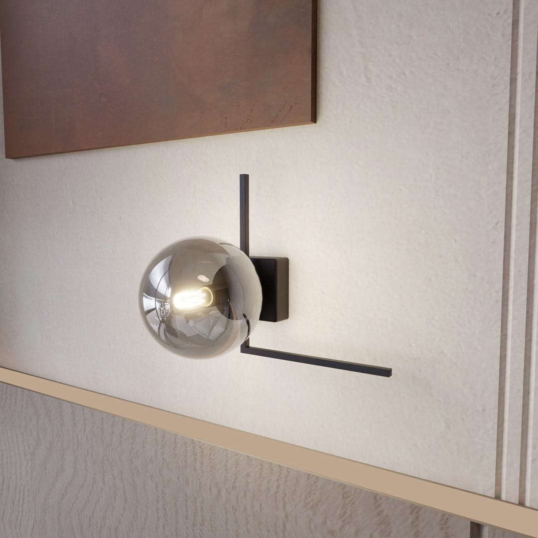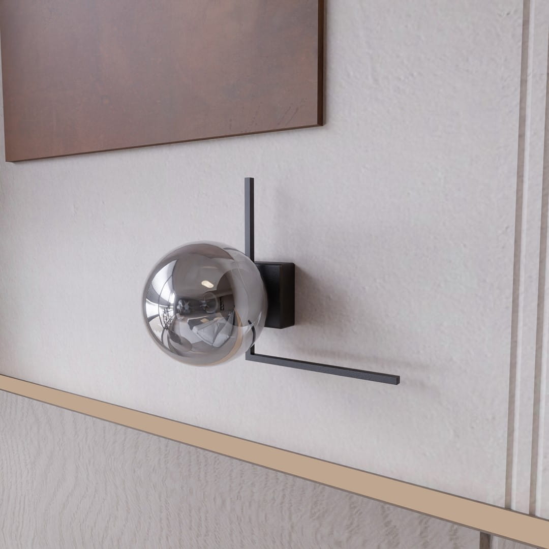 - Głęboka czerń metalowej konstrukcji sprawia, że lampa jest wyrazistym akcentem w pomieszczeniu, a szklany klosz dodaje jej subtelności i lekkości.