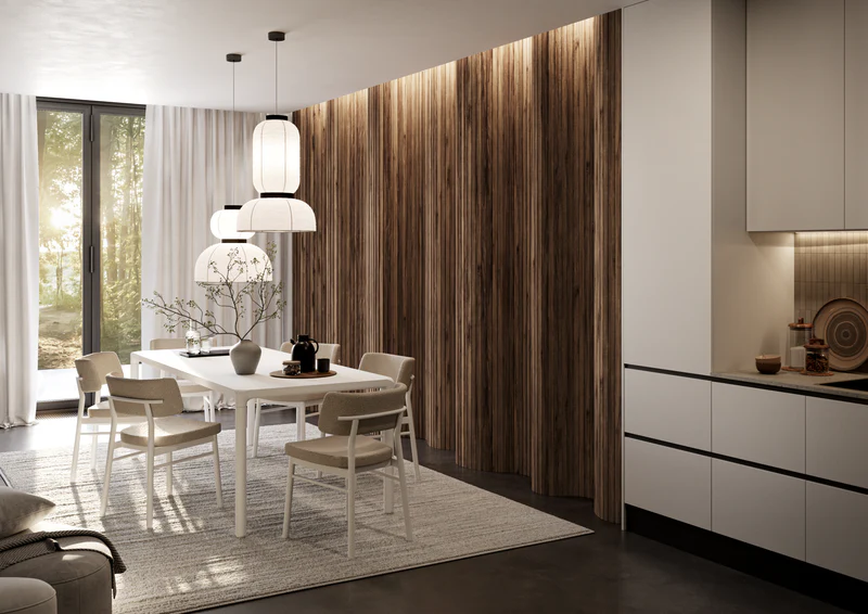 - Do powierzchni prostych i zaokrąglonych – dzięki systemowi łączenia w formie puzzli element można dopasować także do kolumn, wnęk i zakrzywionych konstrukcji.