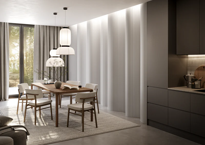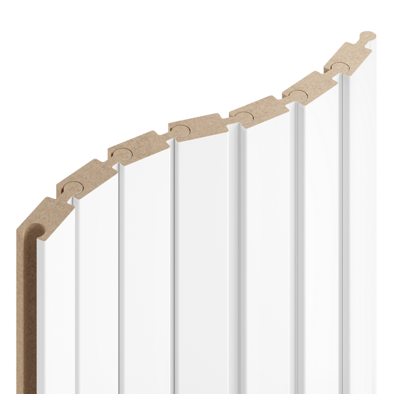 - Do powierzchni prostych i zaokrąglonych – dzięki systemowi łączenia w formie puzzli element można dopasować nie tylko do płaskich ścian, ale również do kolumn, wnęk i zakrzywionych konstrukcji.