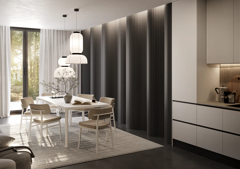 - Dopasowanie do lameli Flex – profil został zaprojektowany z myślą o kolekcji Flex, dzięki czemu idealnie komponuje się z całą zabudową.