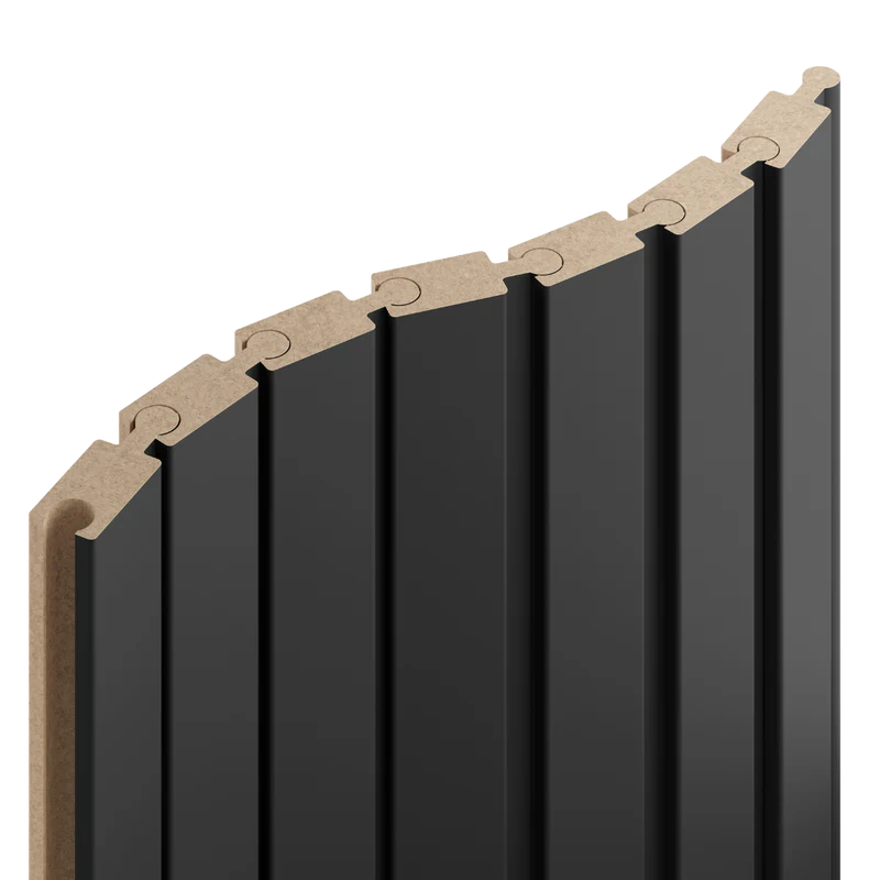 Prawa listwa zakończeniowa do lameli Flex L3D w kolorze czarnym to elegancki element wykończeniowy, który pozwala estetycznie domknąć dekorację po prawej stronie. Głęboka, czarna kolorystyka podkreśla nowoczesny charakter aranżacji i zapewnia spójny, dopracowany efekt zarówno na ścianach, jak i sufitach.