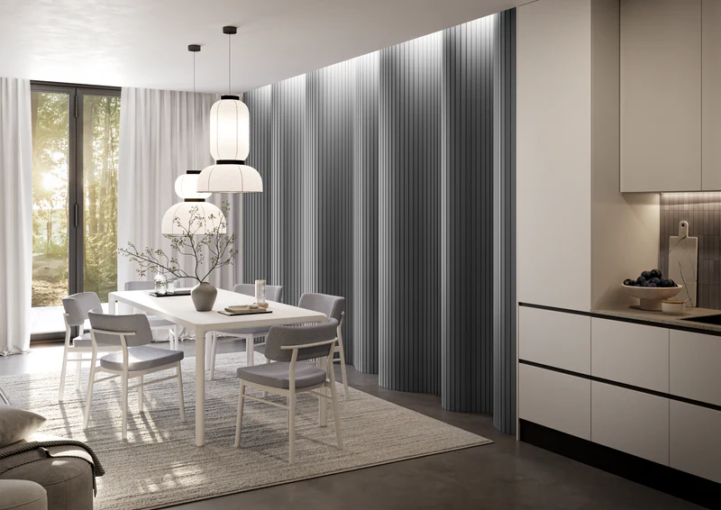 - Dopasowanie do lameli Flex – profil został zaprojektowany z myślą o kolekcji Flex, dzięki czemu idealnie komponuje się z całą zabudową.