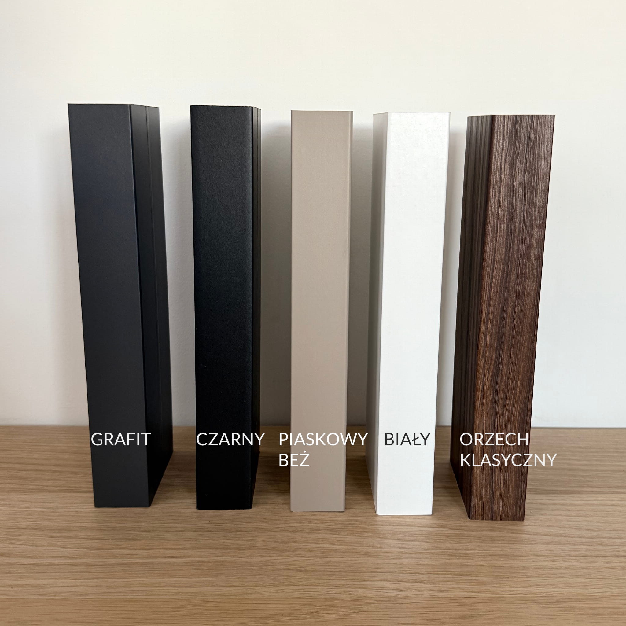 Biały mat, Dąb Sonoma, Dąb Natura, Fornir dębowy, Dąb Wotan, Dąb Europejski, Czarny mat, Orzech Klasyczny, Grafit, Piaskowy Beż.