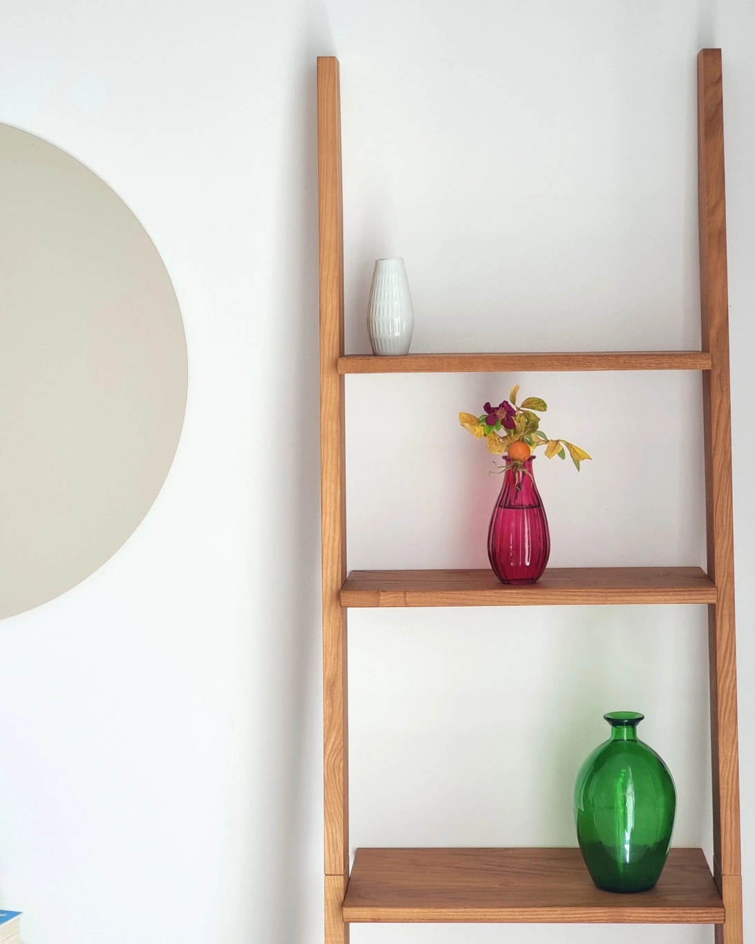 - Regał drabina Ashme to stylowy mebel, który zachwyci wielbicieli meblowego minimalizmu.