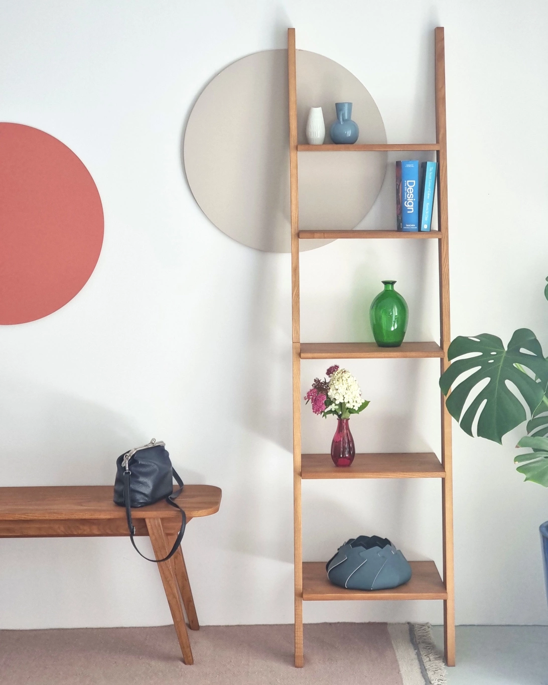 - Charakteru nadaje mu niezwykle oryginalna, drabinowa konstrukcja z jesionowymi półkami.