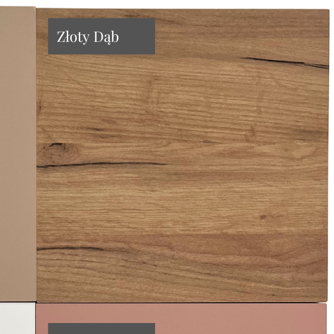- W kolekcji Meli w kolorze dąb złoty występują również: stolik kawowy, szafka RTV, szafa i komoda.