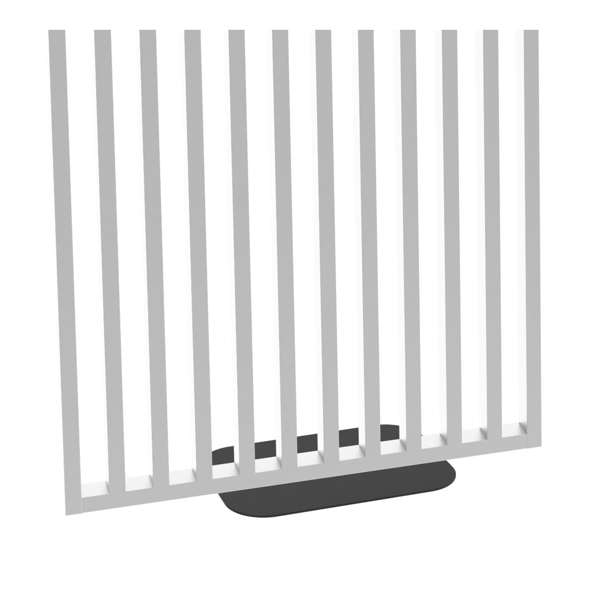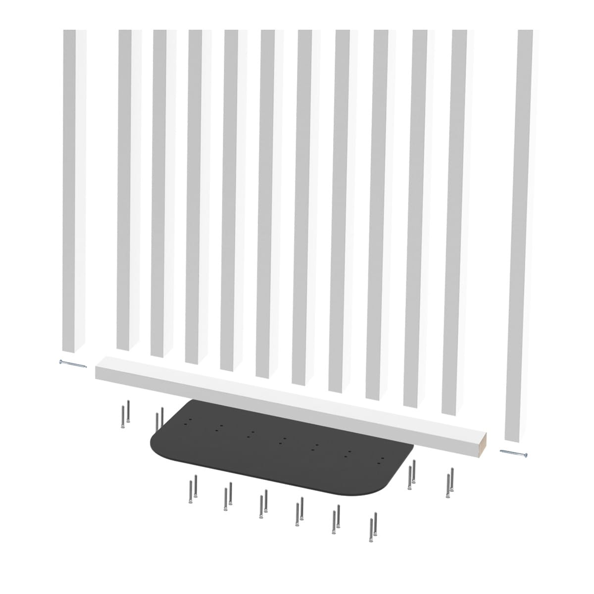 - Ścianka z lameli 3 x 6 cm w odcieniu bieli na stalowej podstawie.