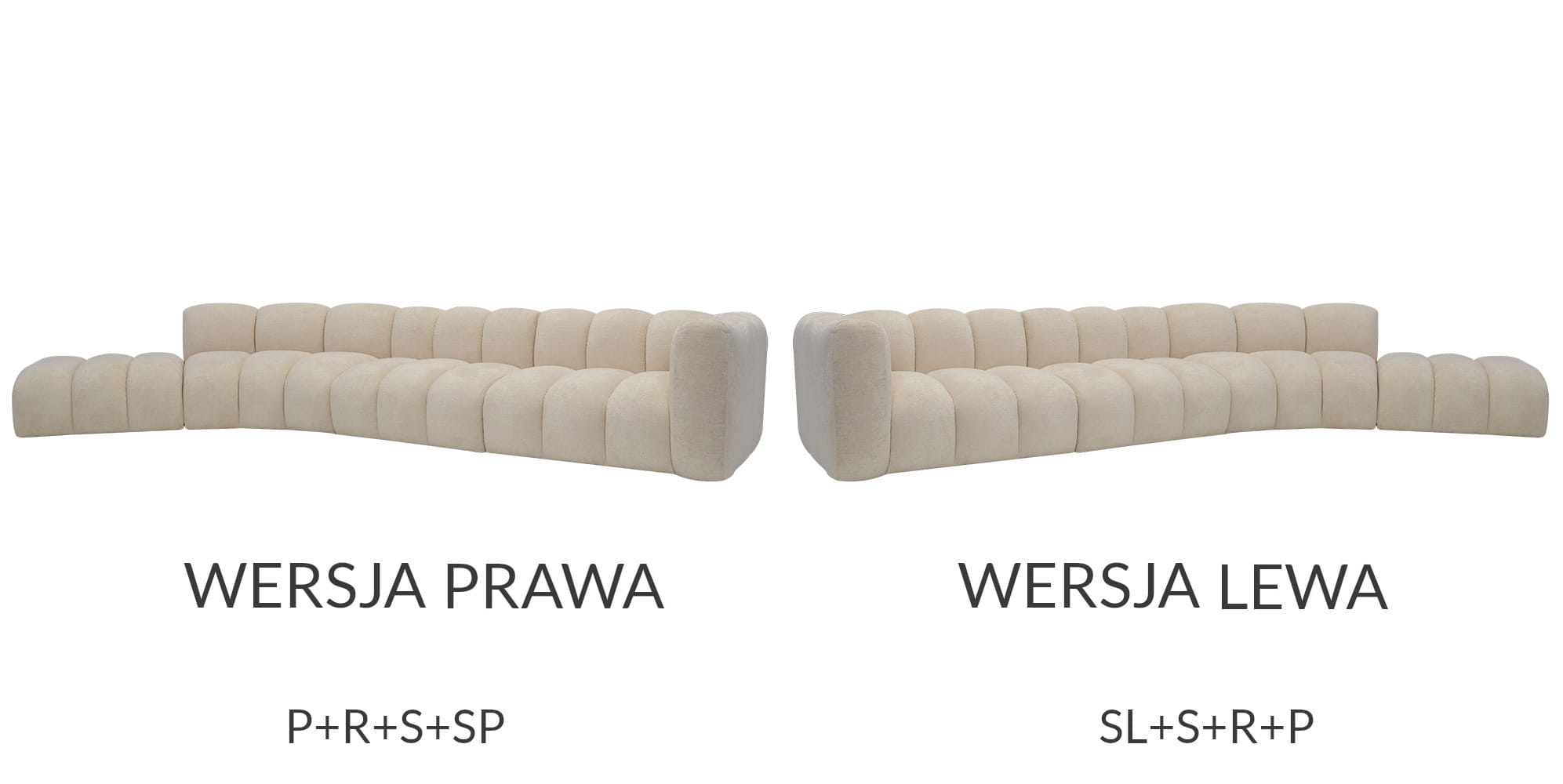 Sofa modułowa zaokrąglona Grand 443 cm - moduły P+R+S+SP (wersja prawa) / SL+S+R+P (wersja lewa)