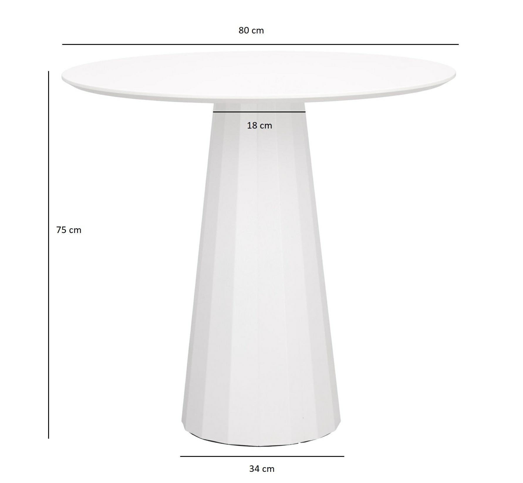 Ponadczasowy stół Florero na jednej nodze to projekt, który przypadnie do gustu wszystkim, którzy cenią sobie uniwersalne rozwiązania i ciekawą stylistykę. Stół na jednej nodze, która dzięki swojej karbowanej powierzchni nadaje całemu meblowi wyjątkowo ciekawy wygląd. Noga stołu, lekko rozszerza się ku dołowi, osiąga średnicę 34 cm na samym dole. Zwieńczeniem mebla jest blat z płyty MDF w gładkiej okleinie. Płyta MDF charakteryzuje się wytrzymałością i odpornością na temperaturę. Okrągły blat stołu nie musi być zabezpieczany przed ciepłymi talerzami lub kubkami, gdyż nie grozi mu odparzenie, tak jak ma to miejsce w blatach drewnianych. Średnica blatu to 80 cm, natomiast jego grubość to 2 cm. Stół wymaga montażu.