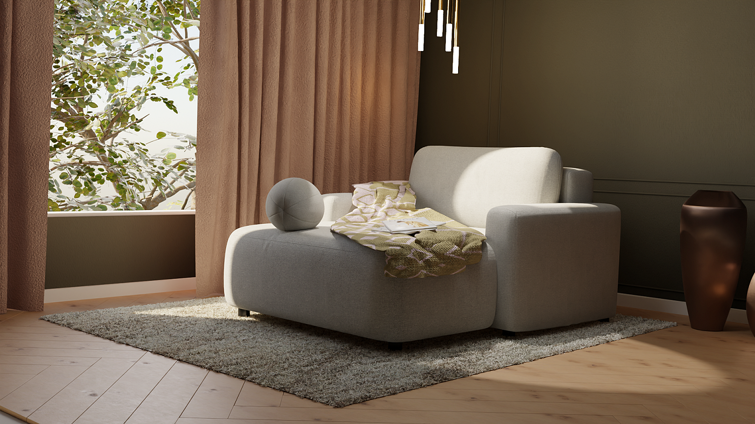 - Zaokrąglona, miękka bryła – dodaje meblowi lekkości i elegancji, zachowując przy tym wysoki komfort użytkowania.