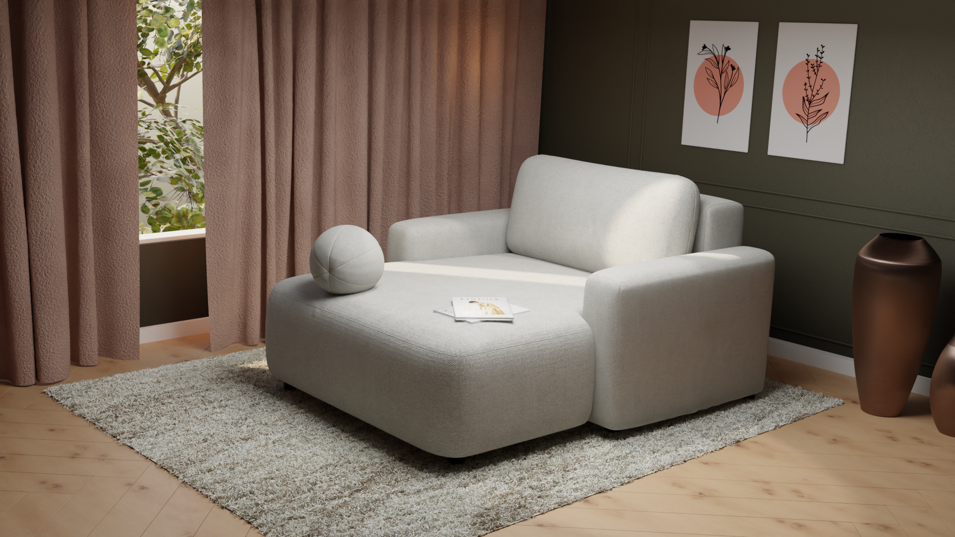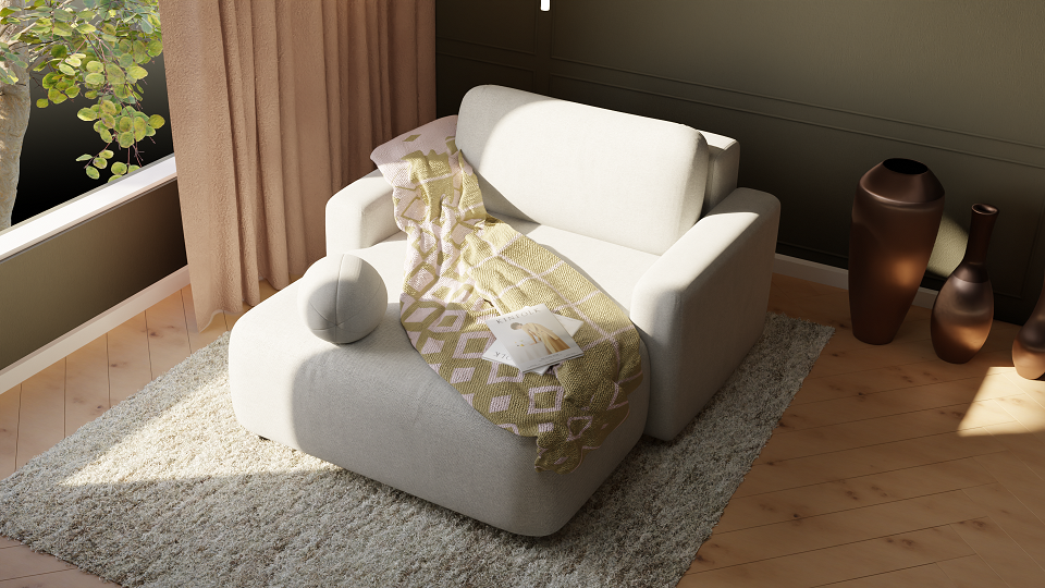 Szezlong Cloud to kompaktowy, ale niezwykle funkcjonalny mebel łączący komfort relaksu z możliwością okazjonalnego spania. Zaokrąglone kształty, miękkie linie i nowoczesna forma sprawiają, że idealnie wpisuje się w aktualne trendy wnętrzarskie. Dzięki funkcji rozkładania i pojemnikowi na pościel szezlong sprawdzi się zarówno w salonie, pokoju dziecka, jak i w pokoju gościnnym.
